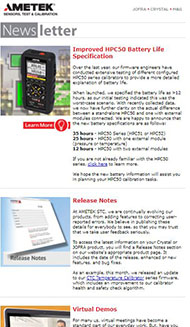 Our newsletters include the latest in AMETEK STC new product announcements, product updates, new features, knowledge sharing such as application notes and case stories, white papers, and even industry-focused mailings. Click the images below for examples.